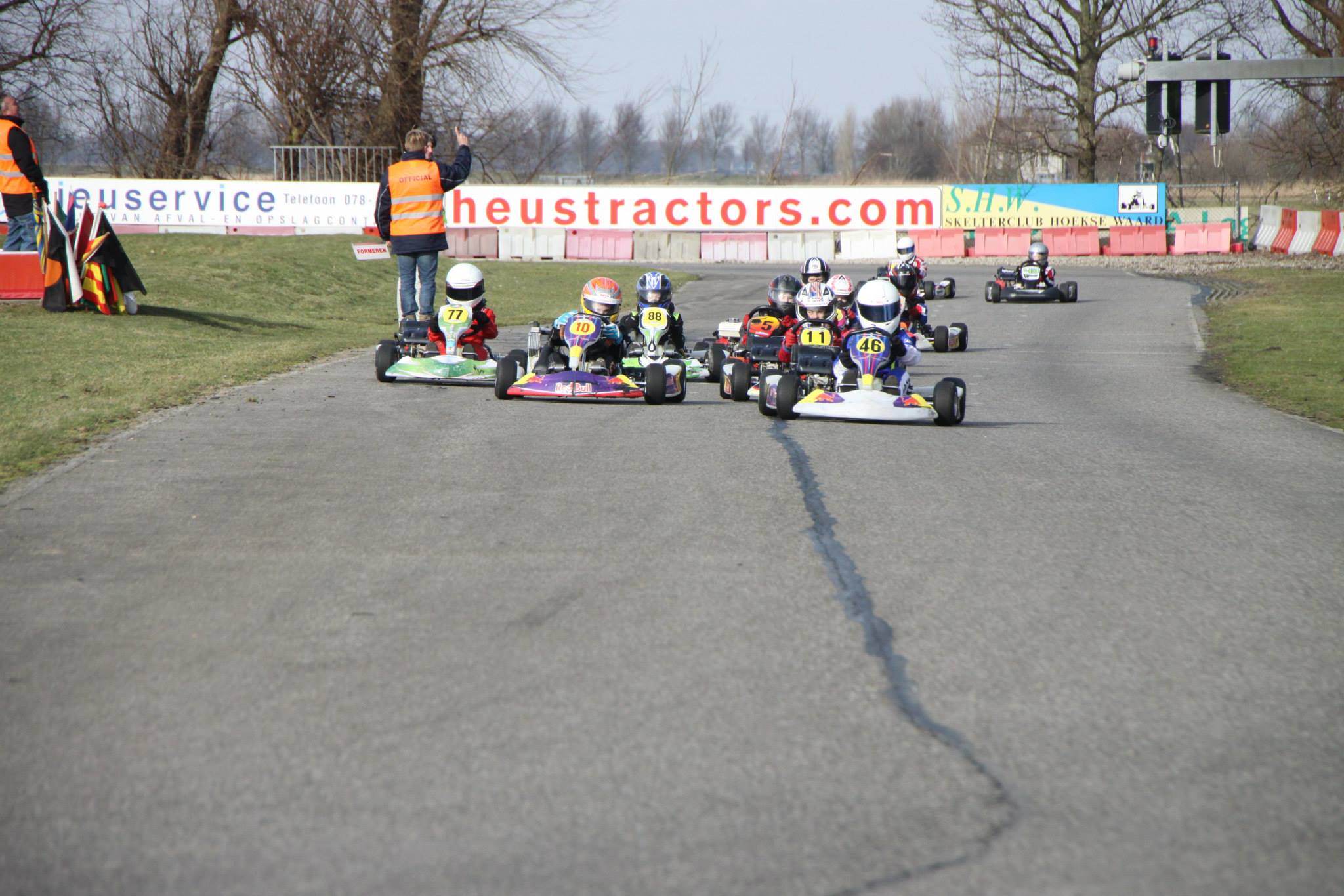 Zondagochtend komen alle medecursisten van KCL aan in Strijen en begint het dagprogramma met de briefing en technische keuring van de kart. Daarna rijden we twee heats. Onderstaande twee video’s zijn van heat 1.