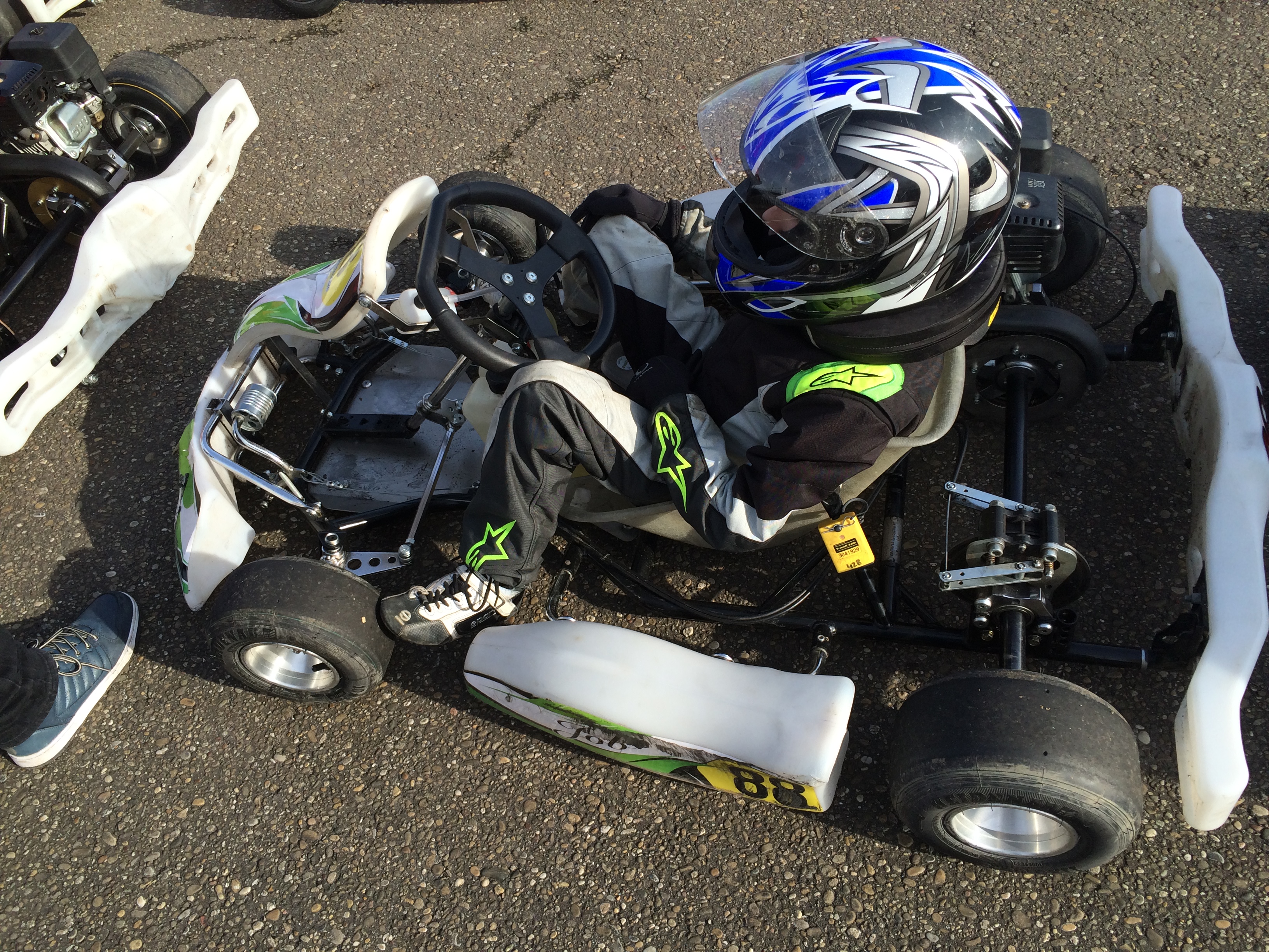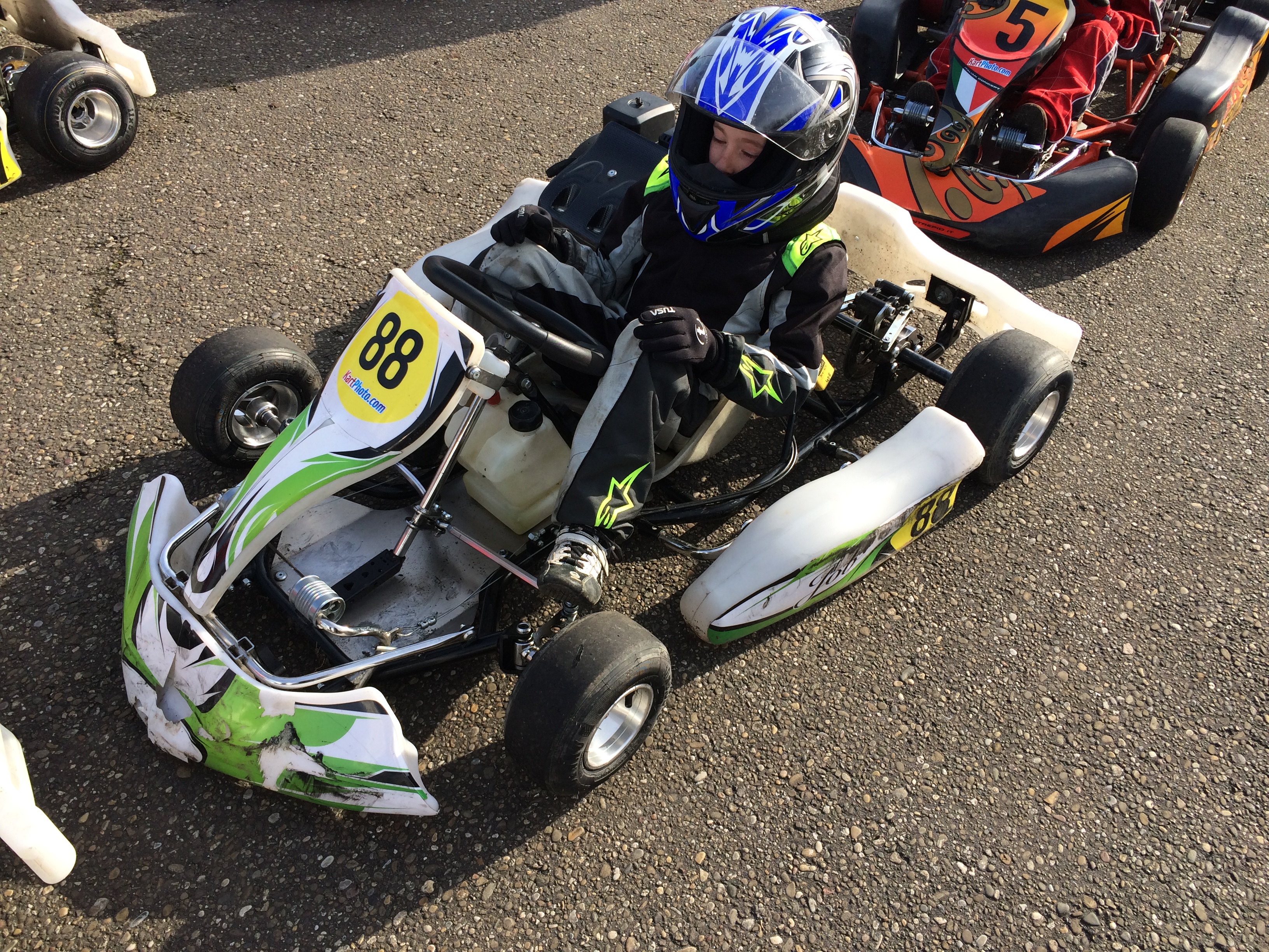 Dit weekend ga ik op voor mijn racelicentie. Zaterdagmorgen ga ik met papa naar Lelystad voor de laatste les van de kartschool. Meteen daarna wordt mijn kart, en die van de andere kinderen, ingeladen in de vrachtauto van en gaat KCL op weg naar Strijen. Dag kart met nummer 88, tot strakjes.